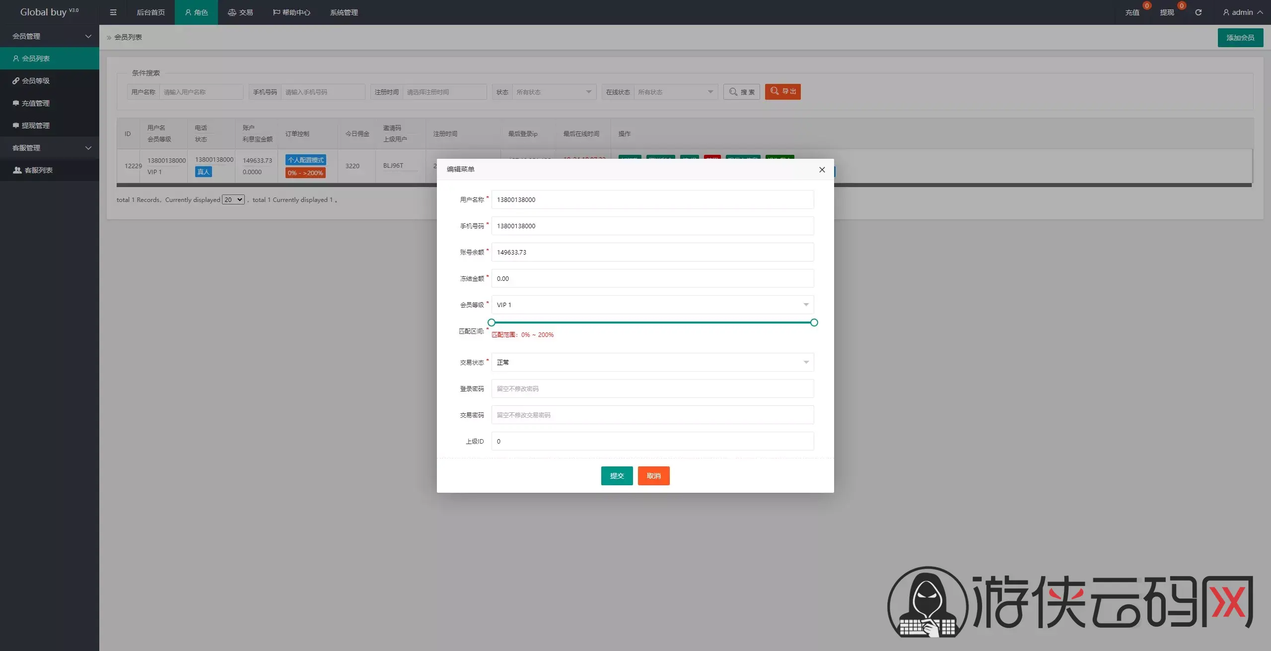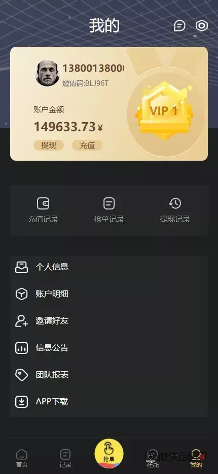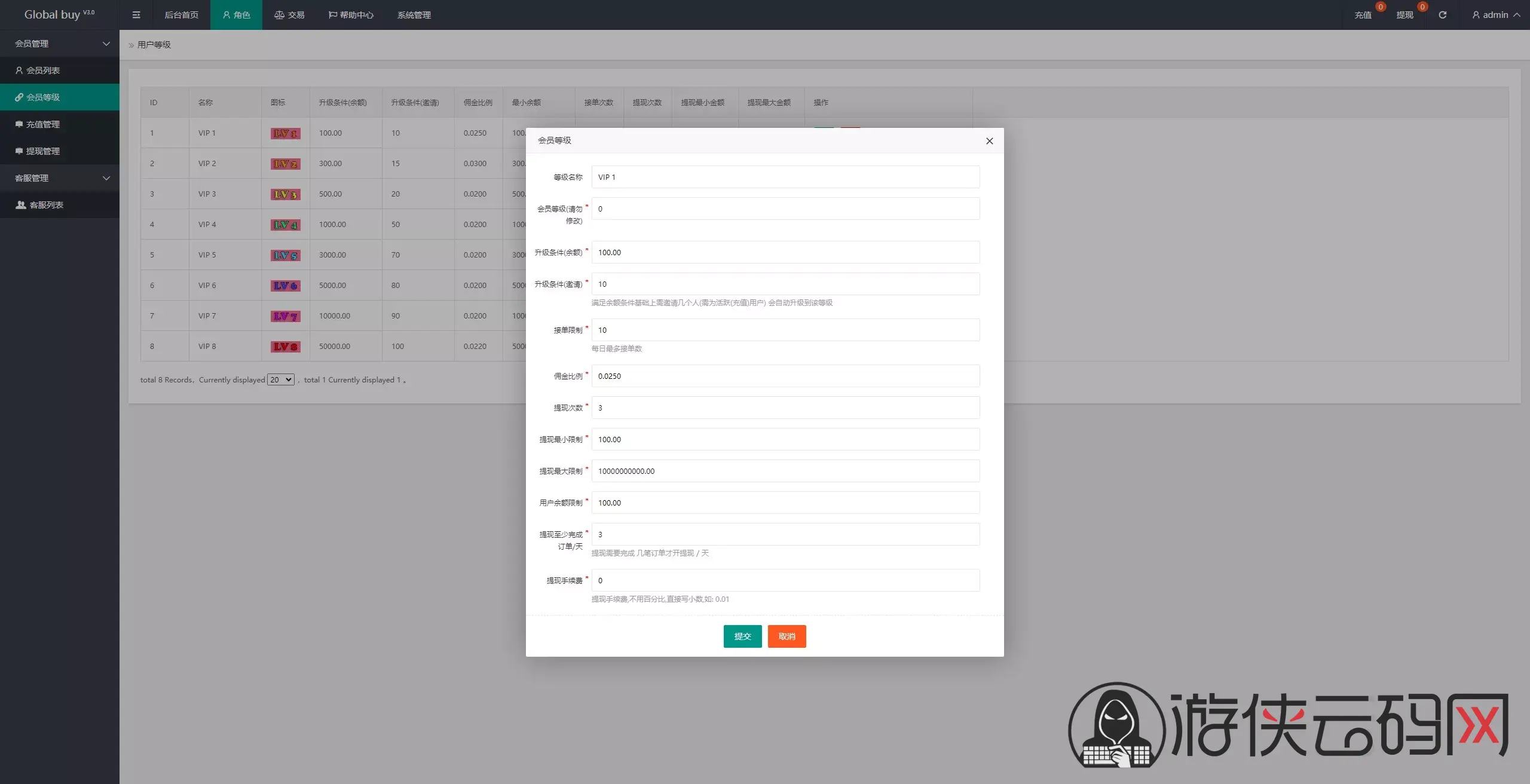 VIP等级模块的设定是根据用户的当前余额以及分销条件自动升级(邀请人数、充值金额等等)。