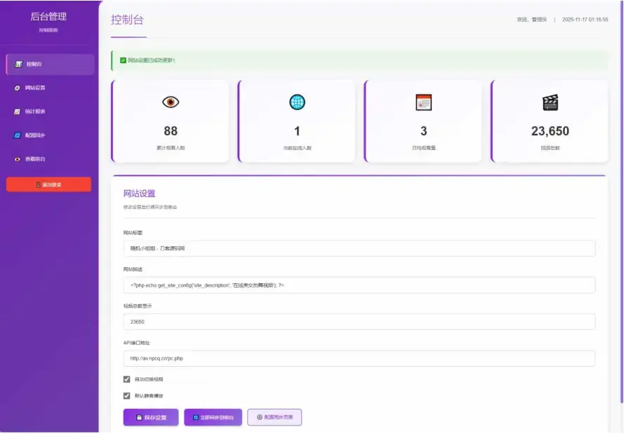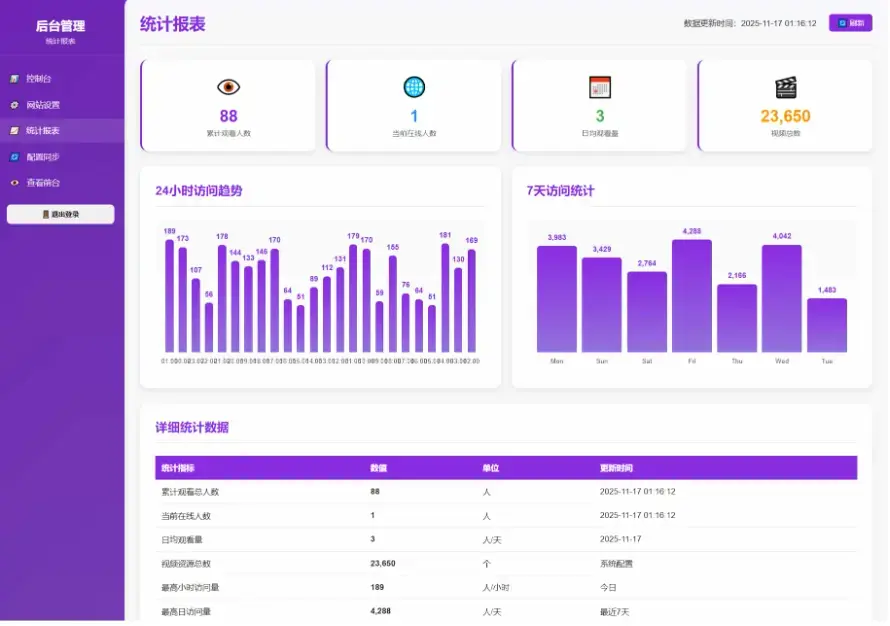 4.0版本更新了后台功能,可以自行修改接口,修改网站信息,后台统计报表等0