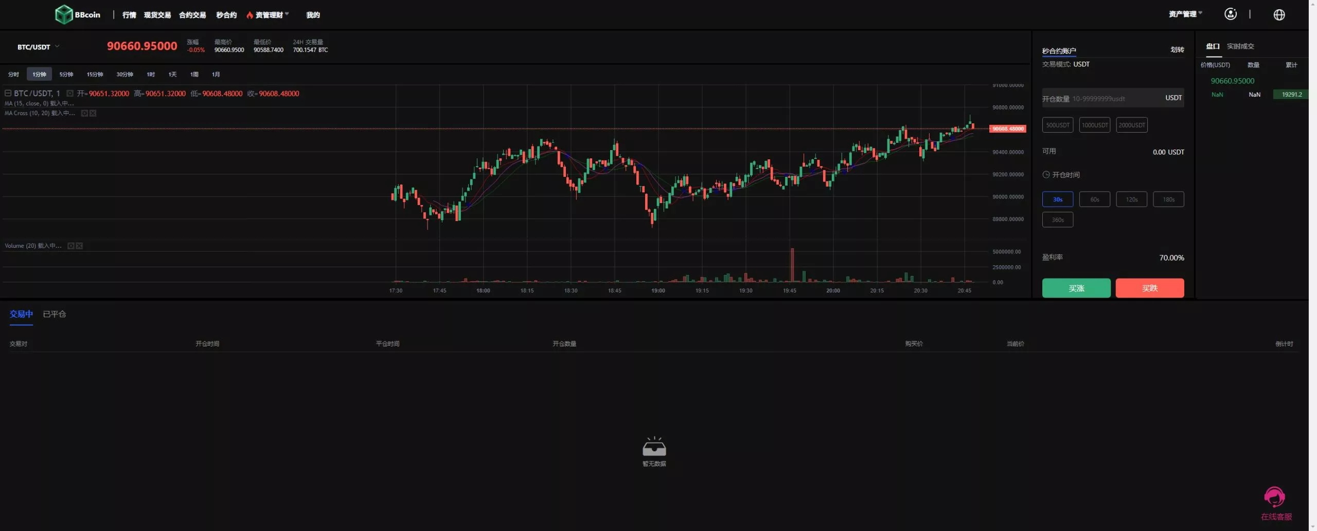 实测 所有页面打开正常点击正常 k线 波动 交易 结算 前后端数据通畅 暂未发现任何问题,非常完美。