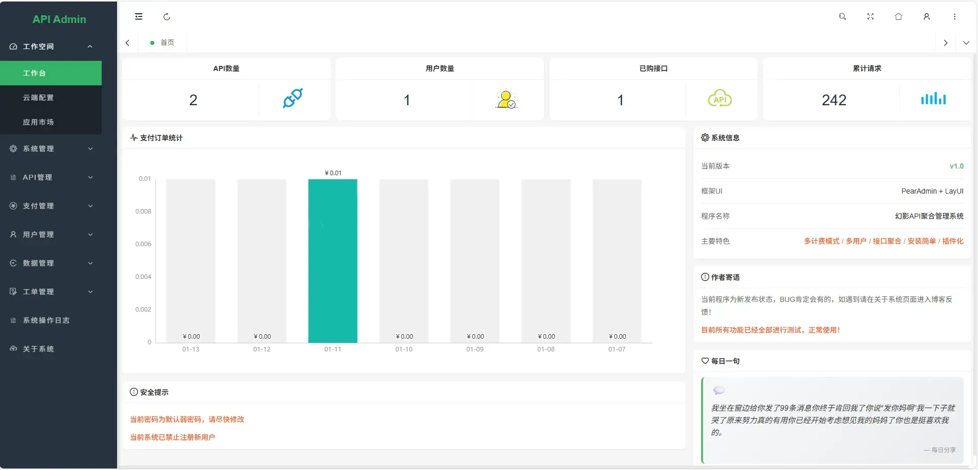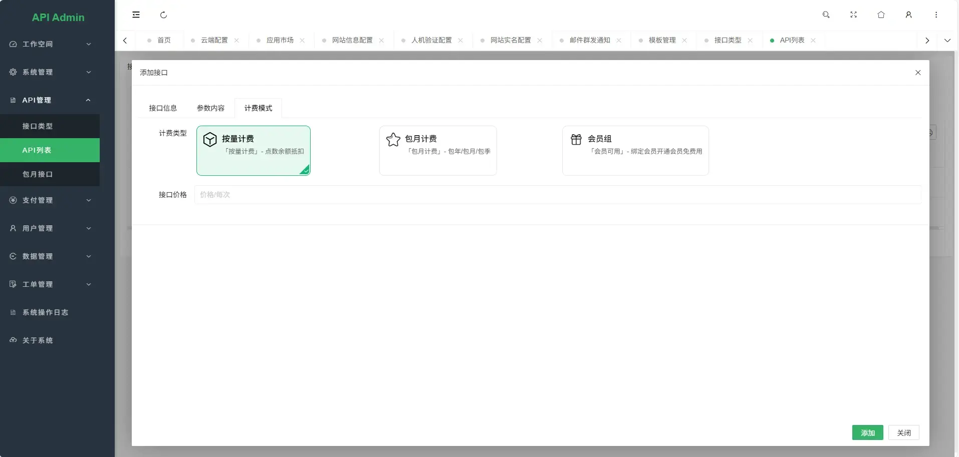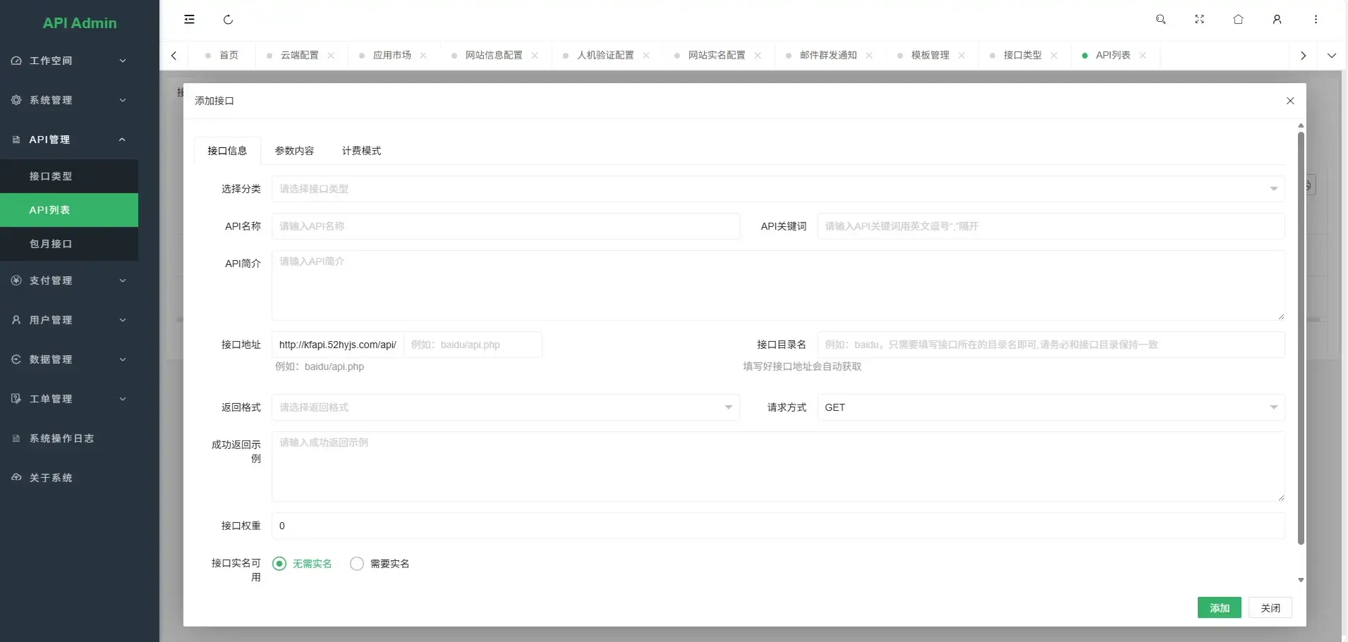 系统采用模块化设计,每个API接口都可以独立配置计费规则。管理员可以轻松添加新的API接口,设置接口参数、返回格式和计费标准。用户可以在线测试API接口,查看实时调用结果和错误信息。