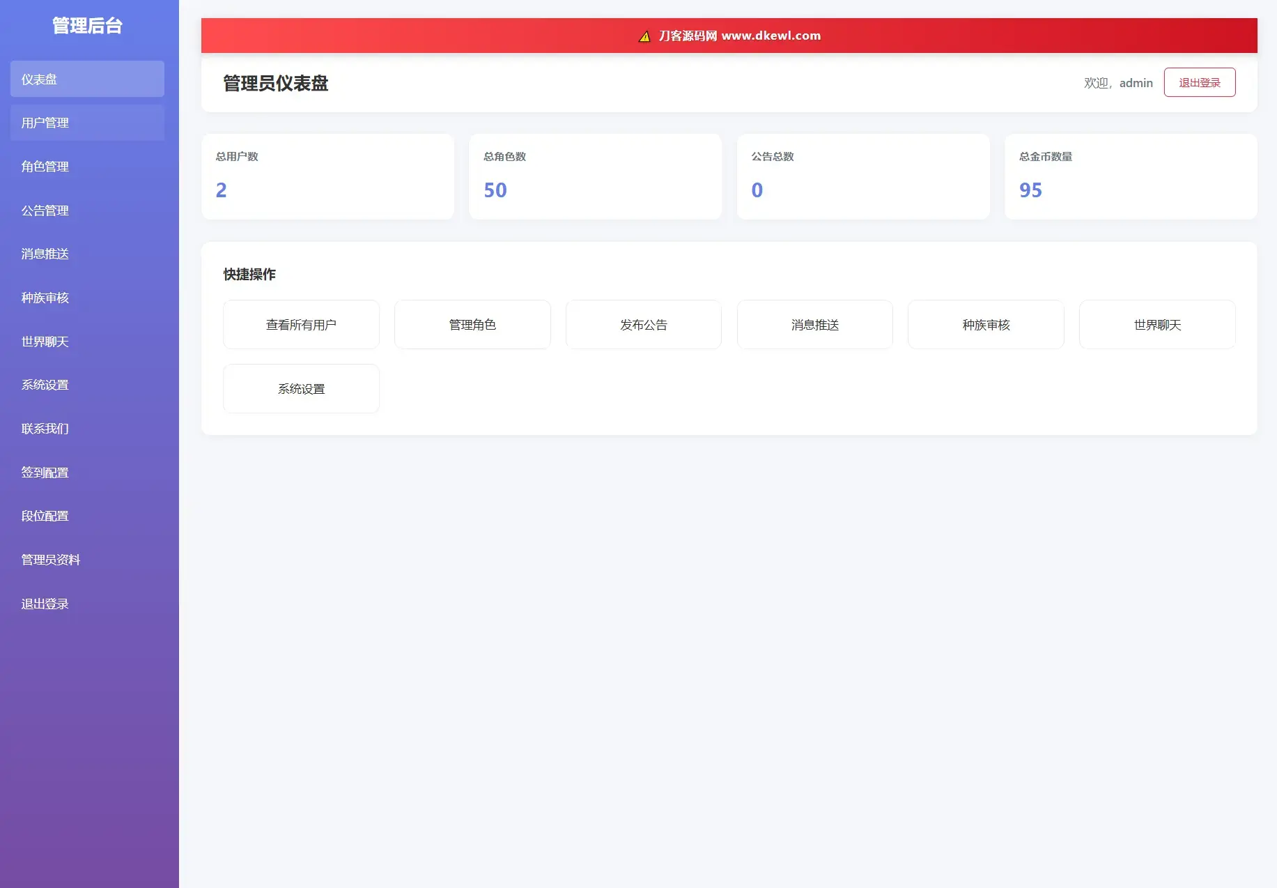 角色管理 :管理玩家游戏角色数据(等级、属性、经验值等)。