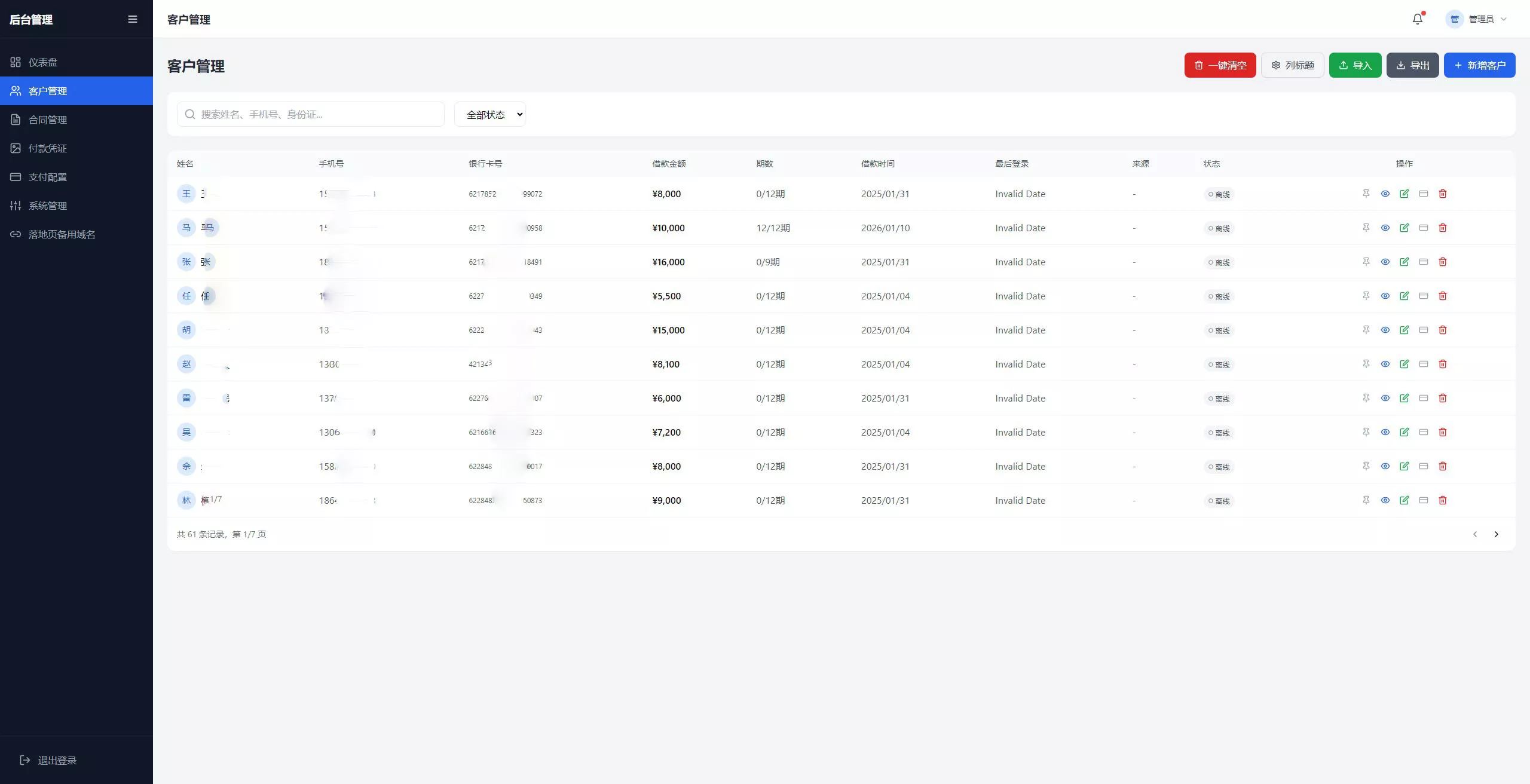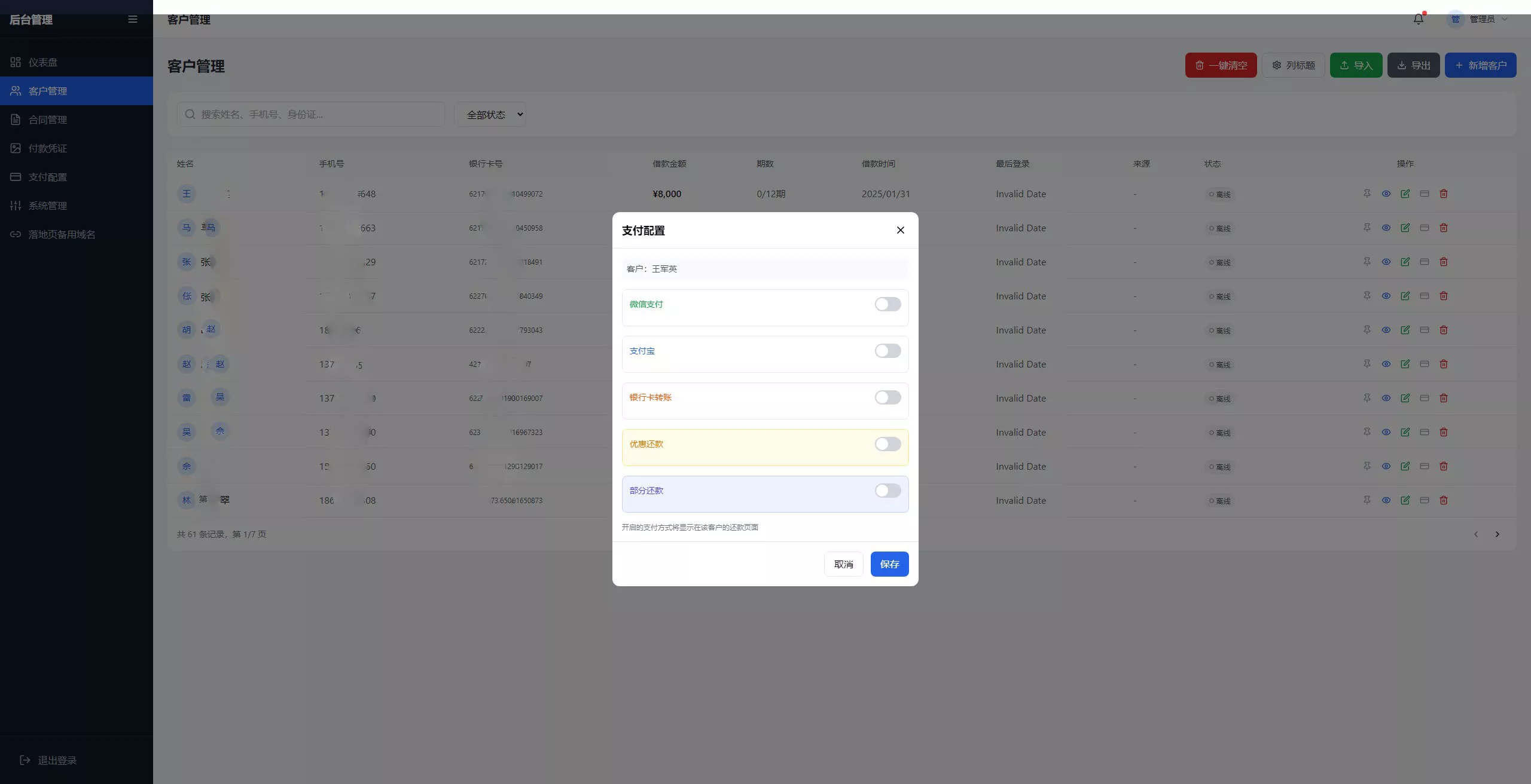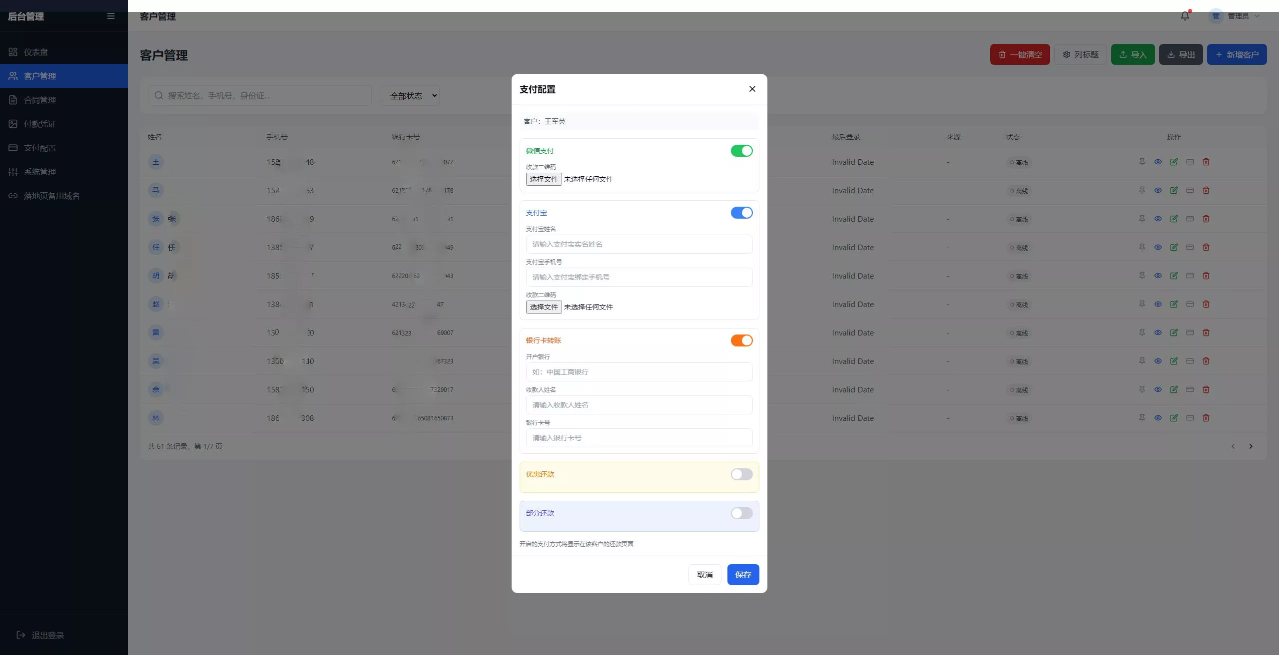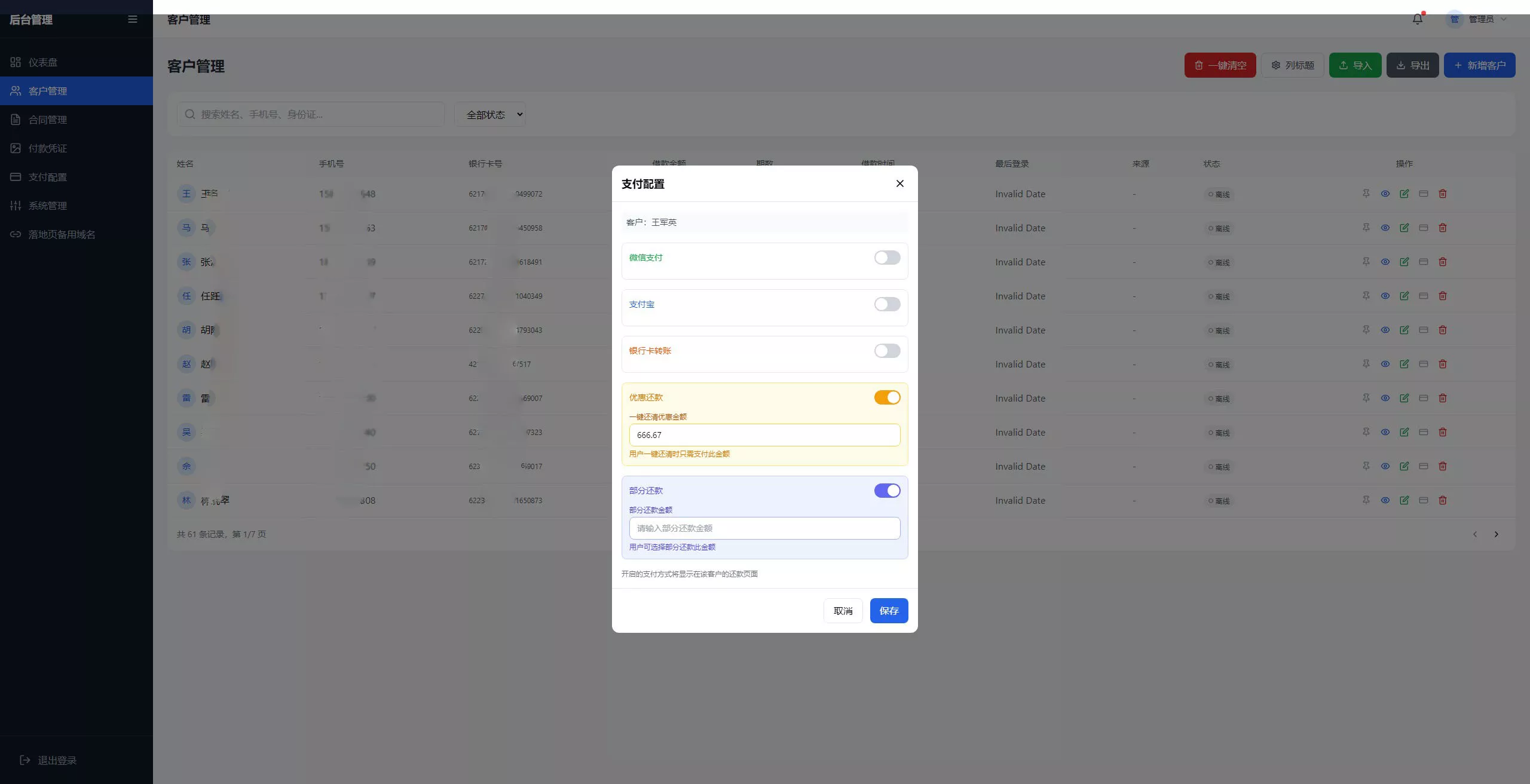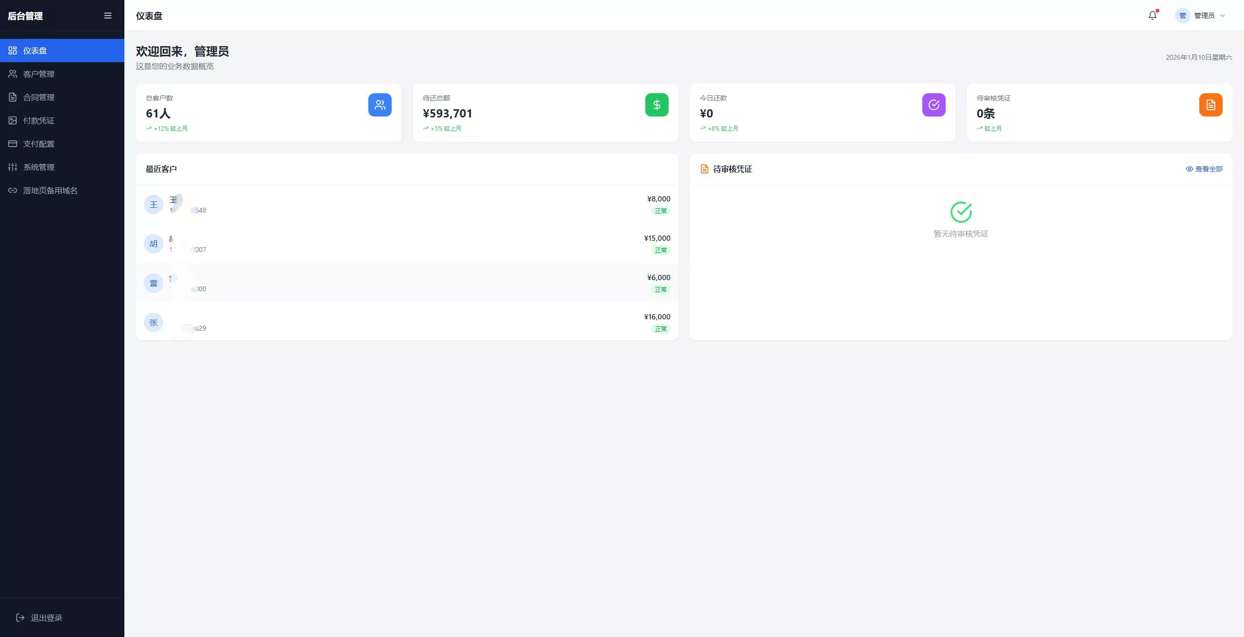 专业催收源码+支付自定义配置+专属独立域名+备用主域名+合同自动生成,后端php,前端VUE编译后