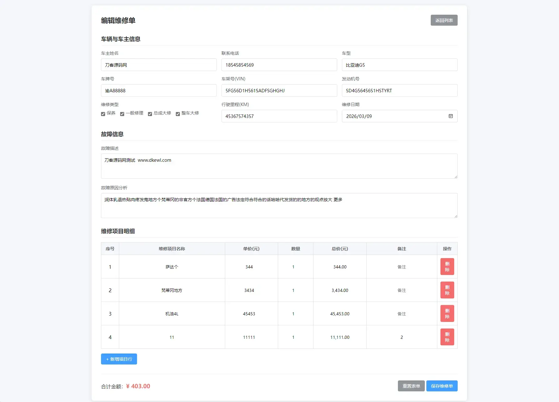 汽修单管理系统源码,专为中小汽修门店打造的轻量化管理工具。它能帮你高效管理维修订单和客户信息,从车辆信息录入到故障分析、费用统计,全程数字化流转,告别纸质单据和混乱台账。