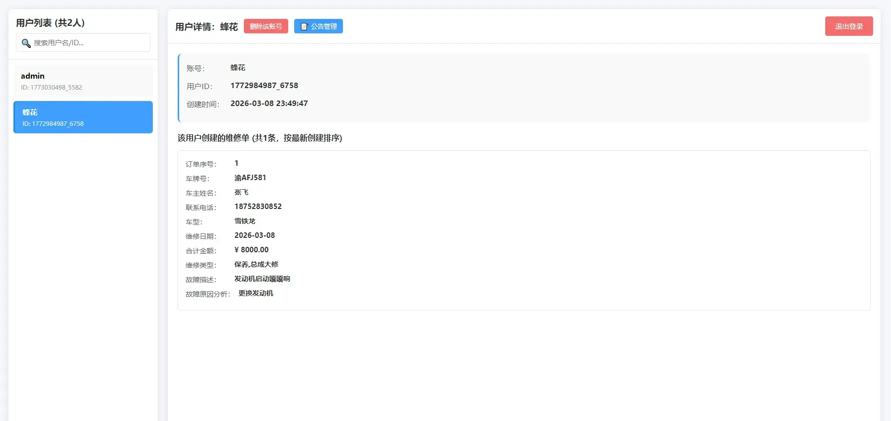 系统界面简洁直观,操作零门槛,同时支持按用户、按日期精准查询,让每一笔维修记录都清晰可追溯,全面提升门店运营效率与客户服务体验。