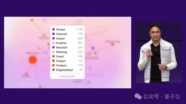 而之所以Amazon Quick能做到这一点,是因为它的背后有一张知识图谱,会连接邮件、Slack、CRM、日历、本地文档和文件等等。